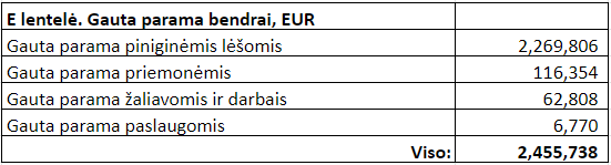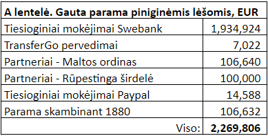 Visos mūsų surinktos lėšos ir jų šaltiniai yra pateikiami A lentelėje ataskaitos pabaigoje.