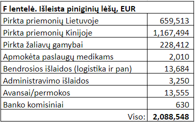 Visos mūsų išlaidos yra pateikiamos F lentelėje ataskaitos pabaigoje.